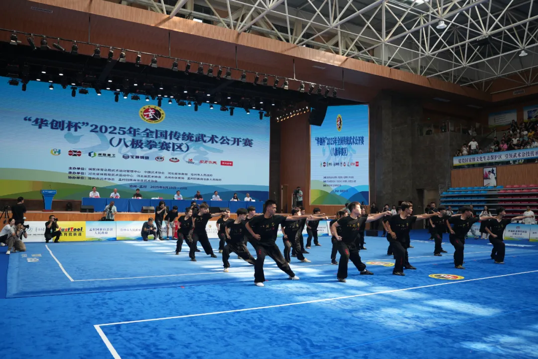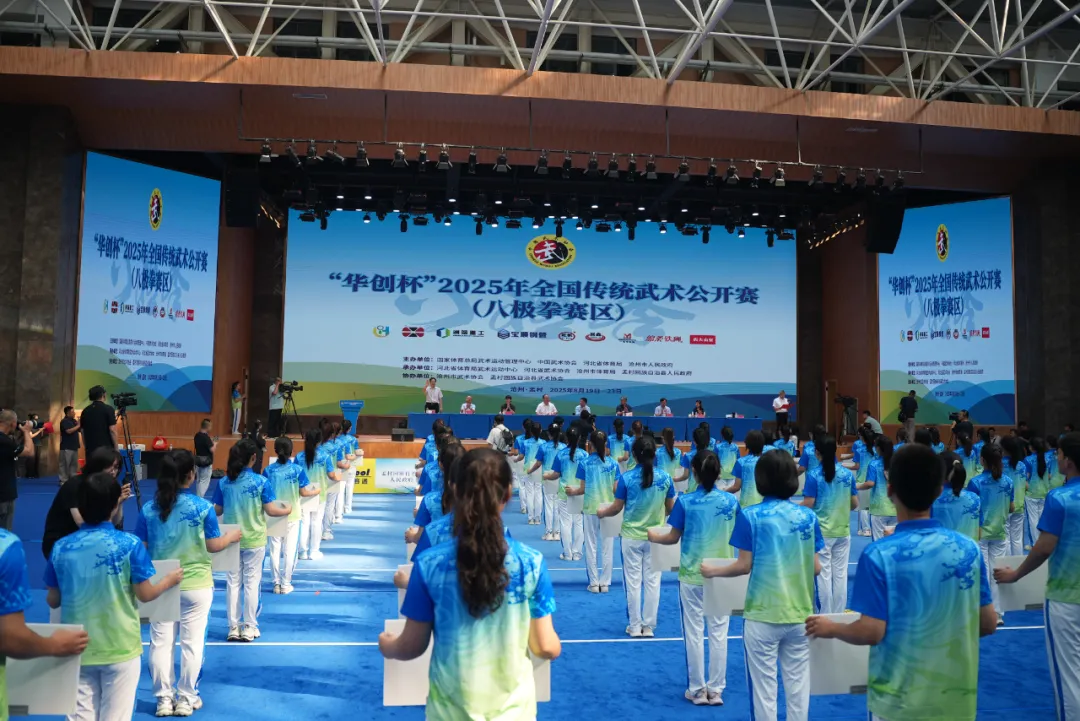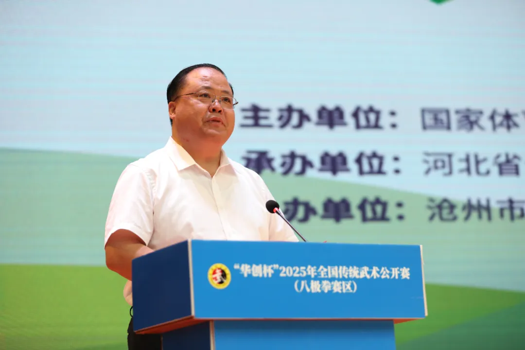 沧州市副市长尹卫江致欢迎词;河北省体育局副局长刘杰在活动中致辞;国家体育总局武术运动管理中心副主任李永强宣布2025年全国传统武术公开赛(八极拳赛区)开幕。