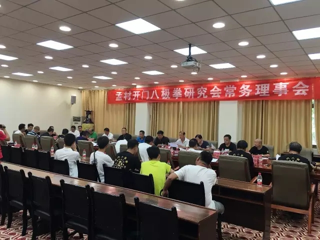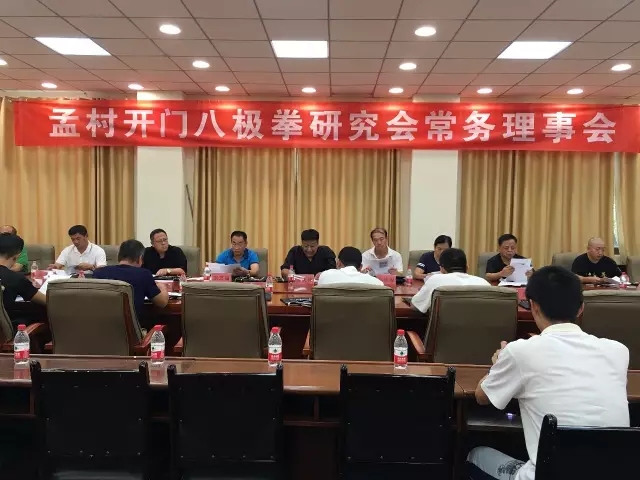 2016年9月12日,孟村开门八极拳研究会第一届常务理事会议在孟村顺利召开,共有26名常务理事参加了会议。